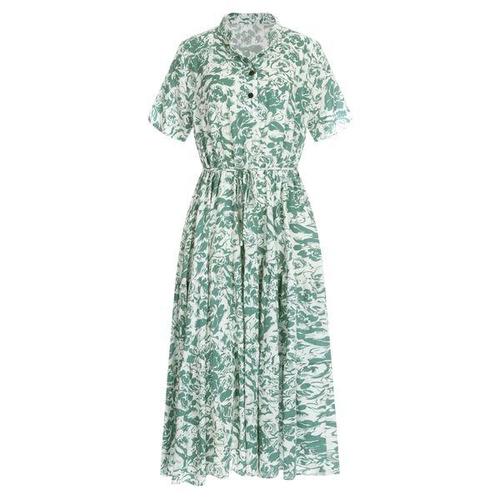 [샵앤]차이나카라 여성 단추 반오픈 허리스트링 반팔 캉캉 롱 원피스 PIC-WDR-12071-그린