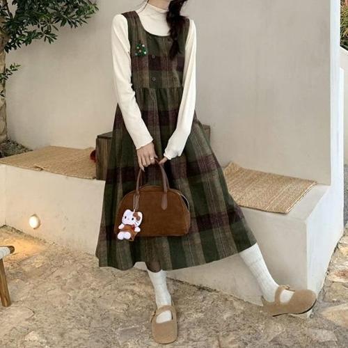 [엄지척]A라인 여성 겨울 레이어드 민소매 원피스 그린_19951405_667501