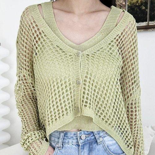 [옷자락]여성 데일리 펀칭 짜임 니트 시스루 그물 숏 가디건