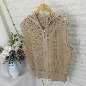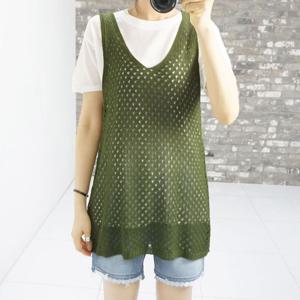 [옷자락]여성 펀칭 여름 니트 조끼 포켓 브이넥 그물 니트