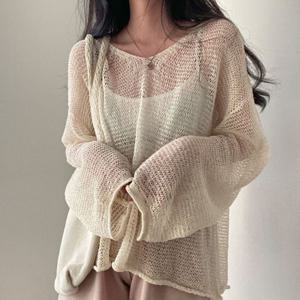 여성 브이넥 시스루 여름 그물 니트 HH-E34