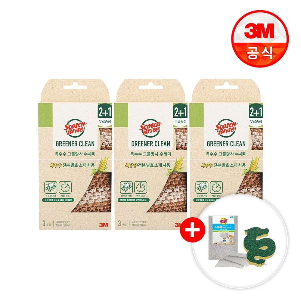 [3M]그리너클린 옥수수 3중 그물망사 수세미 3입 3개(총9입)