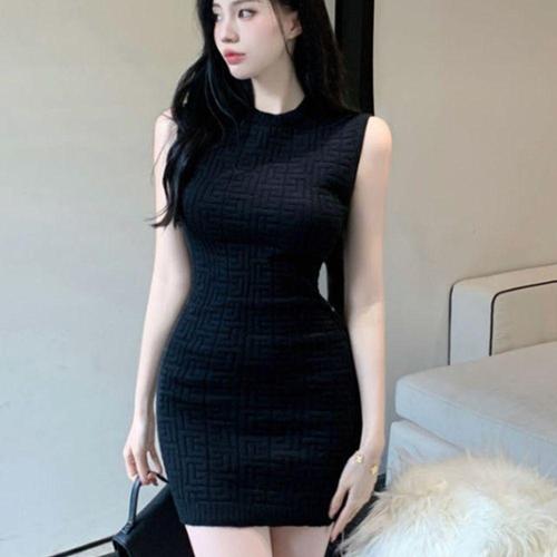 민소매원피스 미니 스판 슬림핏 골지 글램 원피스 WFLRZDR
