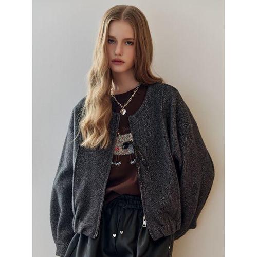 [마쟈]글리터 라운드넥 니트 블루종 자켓