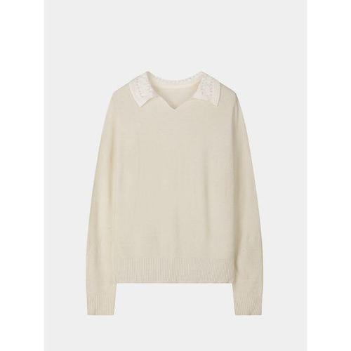 [요하넥스]배색카라 글리터 홀가먼트 니트탑