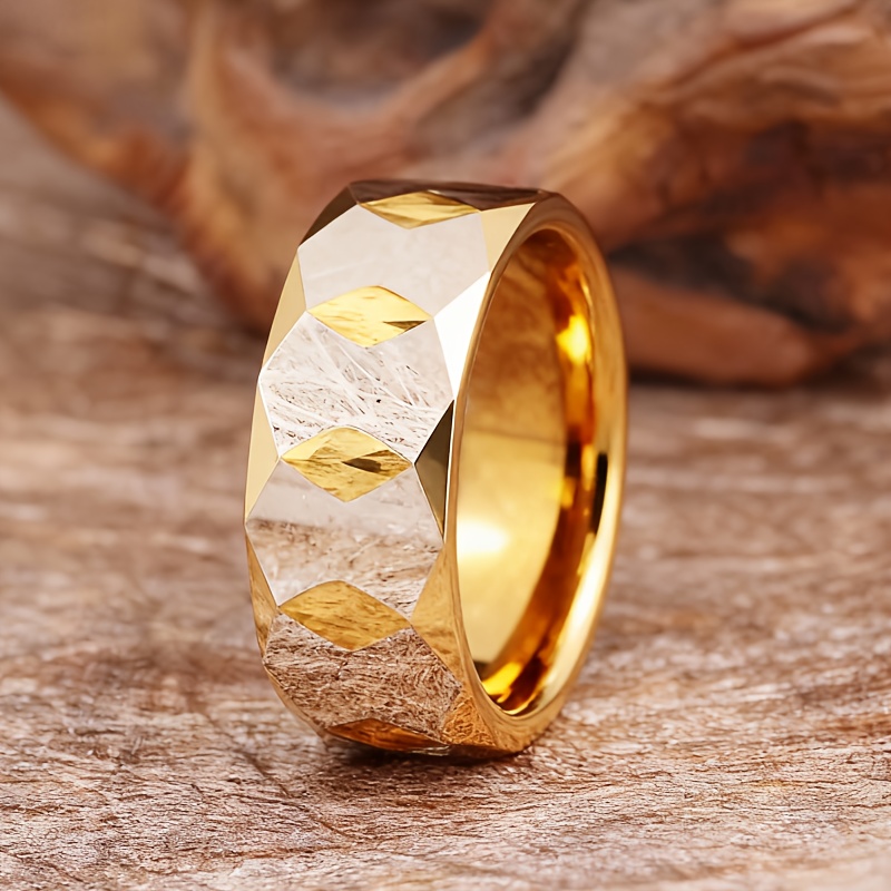 TEMU 고품질 8mm 폭 골드 316L 스테인리스 스틸 링, 남녀공용 패셔너블하고 시크한 럭셔리 웨딩 주얼리
