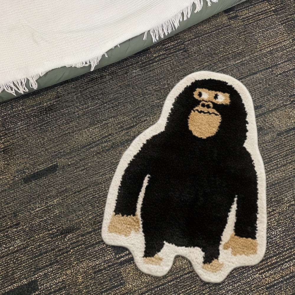 TEMU 1개 원숭이 모양 매트 - 귀여운 원숭이 얼굴과 꼬리가 있는 플러시 매트, 세탁기 사용 가능한 푹신한 바닥 매트, 침실, 놀이방용 - 룸 데코, 고무/혼방, 침대 옆 매트