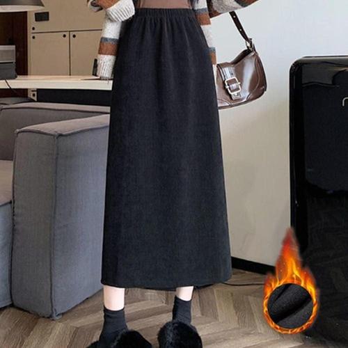 니어샵 여성 융털기모 코듀로이 스판 절개 H라인 뒷트임 롱 스커트