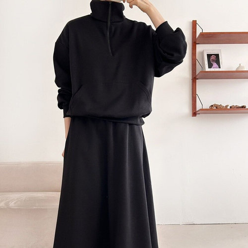 플러리싱 / 데일리 기모 반집업 롱 스커트 세트 플러리싱