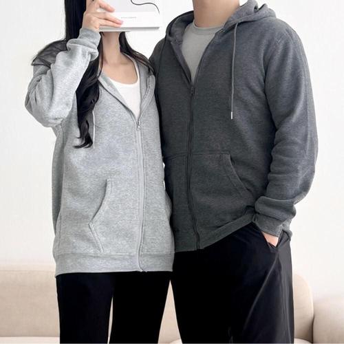 [에이치플러스몰]캐주얼 남여공용 무지 기모 안감 후드 집업