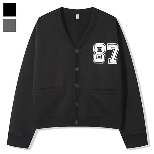 기모 브이넥 맨투맨 가디건 단추 오버핏 아우터 블랙