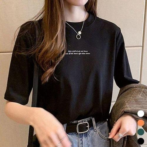 [에이치플러스몰]기본 여성 캐주얼 영문 반팔 필수템 라운드 티셔츠 UR
