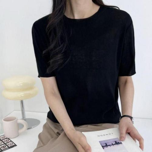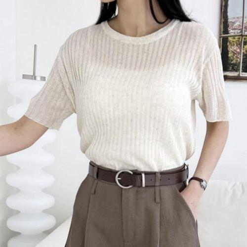 [에이치플러스몰]반팔 니트 라운드 기본 이너 여성 시원한 가벼운