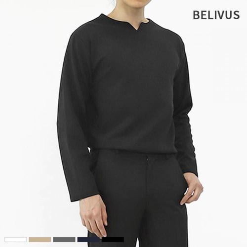 기본티 레이어드티 긴팔티 무지 브이넥티 베이지 WFKZYFN