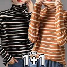 타임퓨어 1+1 여자 스트라이프 목폴라 티셔츠 가을 겨울 빅사이즈 루즈핏 줄무늬 긴팔 소프트 기모 터틀넥 이너티 2장묶음