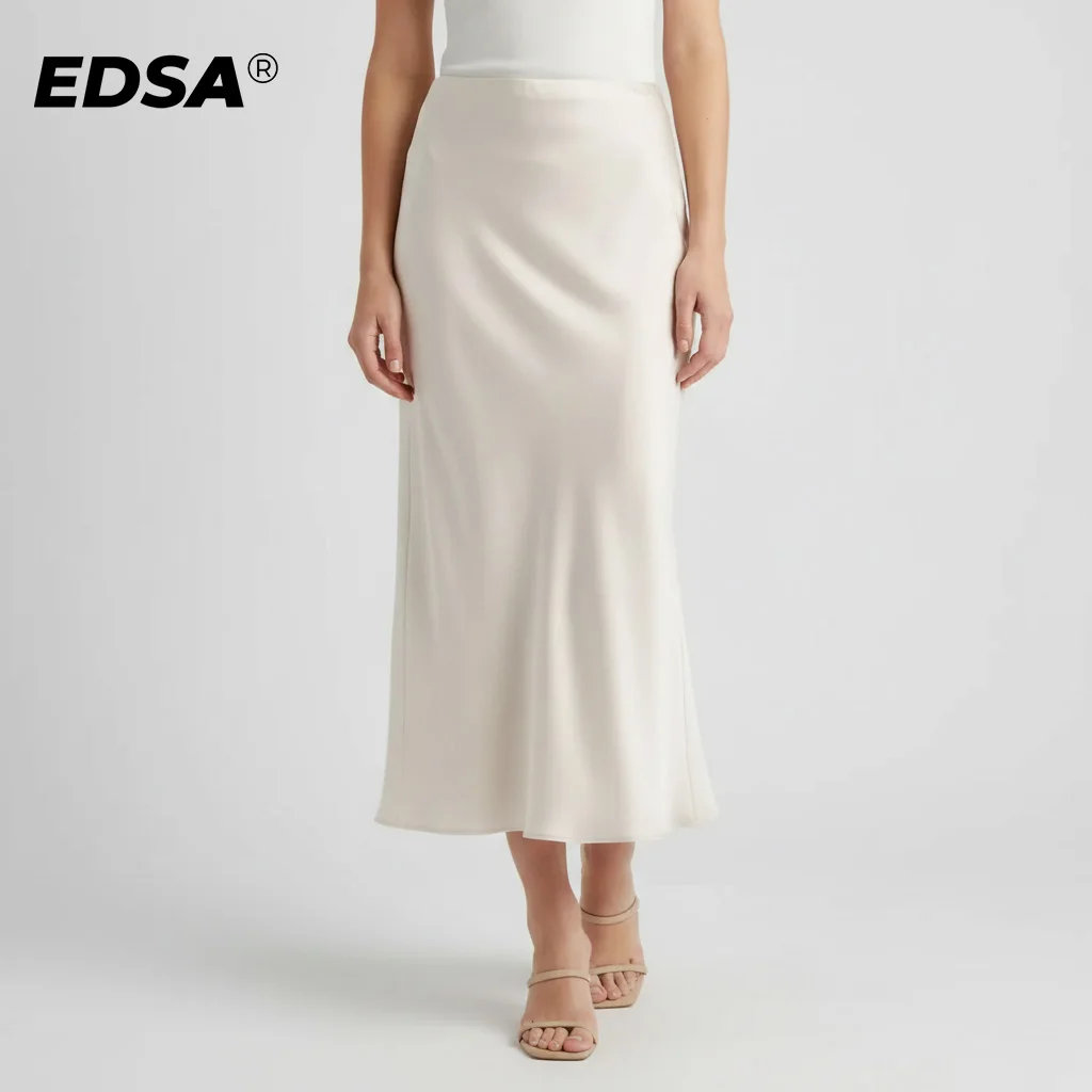 Mooyufon 여성 패션 2024 봄 새로운 새틴 질감 활 장식 빈티지 세련된 여성 하이 웨스트 H 라인 롱 스커트 Mujer
