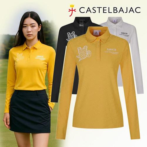 [까스텔바작]가을 여성골프웨어 캐릭터 자카드 전판 카라 아트웍 포인트 기능성 상의 긴팔 티셔츠