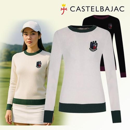 까스텔바작 로고 패턴 자카드 자가드 라운드 가을 여성 골프웨어 유니크한 캐주얼 데일리 여자 풀오버 긴팔 니트_CA