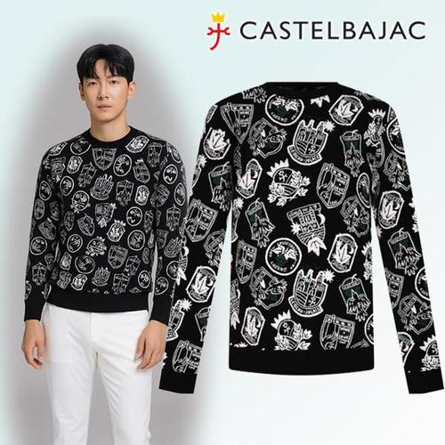 [까스텔바작]가을 라운드 스웨터 기능성 포인트 남성골프웨어 엠블럼 아트웍 자카드 골프니트