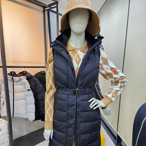 까스텔바작 롱다운 폭스퍼 벨트 패딩 롱패딩 겨울 여성 골프웨어여자 데일리 캐주얼 라운딩 블랙 점퍼_CA