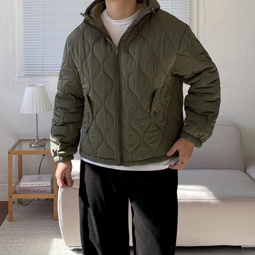 [쿼터]남자 깔깔이패딩 6온스 누빔 후드 크롭 점퍼 경량 숏패딩
