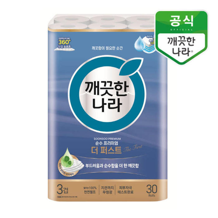 깨끗한나라 순수 프리미엄 더퍼스트 3겹 화장지 30m 30롤 x 1팩