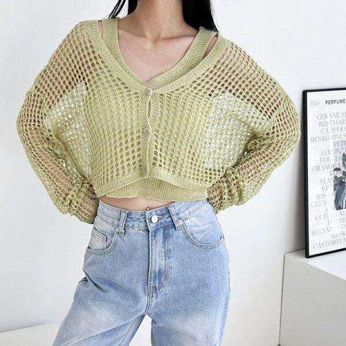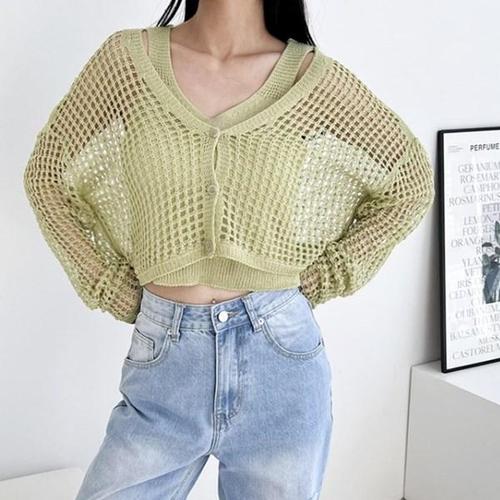 [모노무드]LMO 걸스 심플 크로셰 베스트자켓 여름철 뜨개 슬리브리스탑 오픈니트 밝은색 스웨터여성 망사