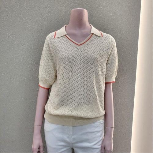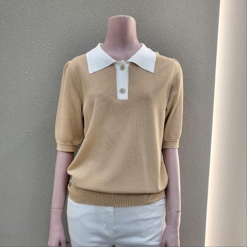 꼼빠니아 25SS 브이넥 니트 티셔츠 봄 여름 간절기 결혼식 하객 CAFS2-WSZ010