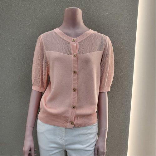 [꼼빠니아]여성 25SS 프릴넥 시스루 니트티셔츠AFS2WKL010750LPK