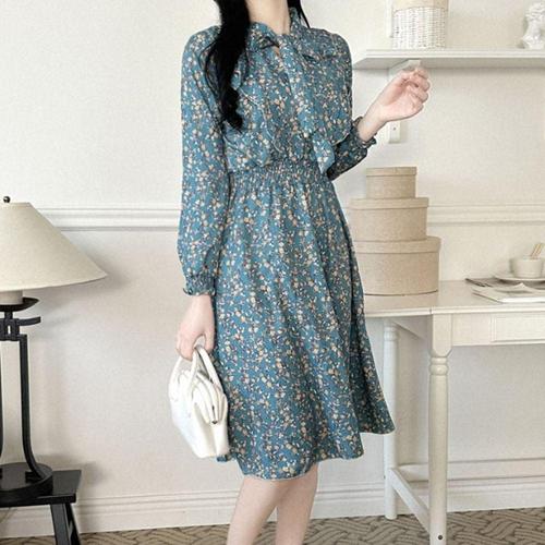 이쁘다요 꽃무늬 가을 긴팔 잔꽃 원피스 봄 플라워 롱 리본 WFLMET6