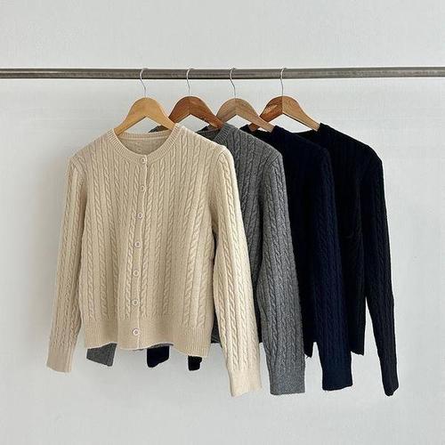 [옷자락]여자 겨울 연말 꽈배기 베이직 라운드넥 단추 가디건