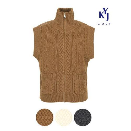 [김영주골프]겨울 하이넥 집업 꽈베기 패턴 베스트 여성 골프 니트조끼 DPWLVE75