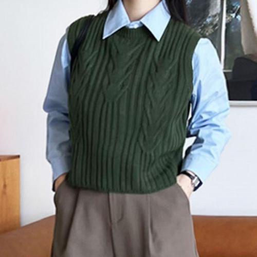 베스트 꽈베기 조끼 니트조끼 패턴 여자 라운드 (WFKJXMP)