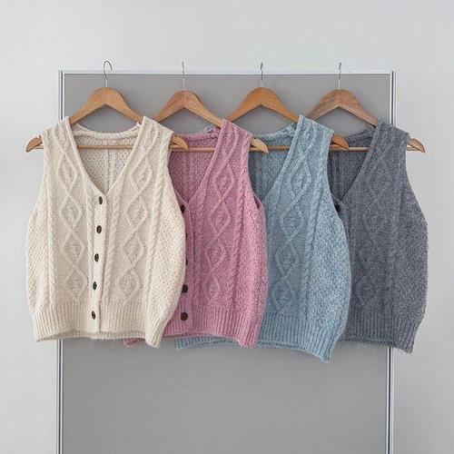 [신상오픈런]여성 브이넥 니트조끼 7가지 색상 가을 꽈배기 디자인 울 소재