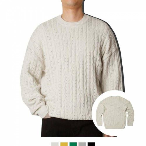 [누적판매 20만장] 에이지오디 크루넥 오버핏 케이블 스웨터 니트 꽈배기 라운드 데일리 남녀공용