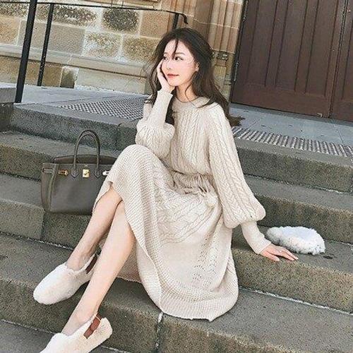 [다잇템]여자 등원룩 롱 FW 스웨터 꽈배기 원피스