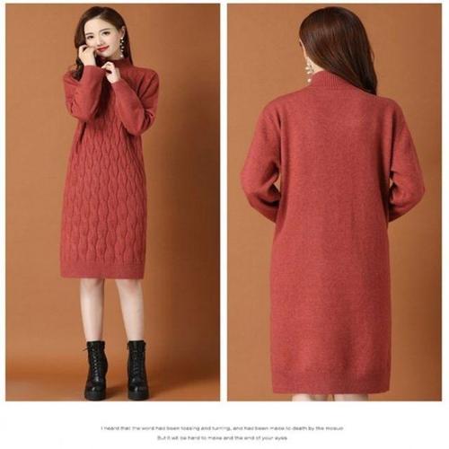 [다잇템]여자 스웨터 꽈배기 롱니트 폴라넥 중간 원피스