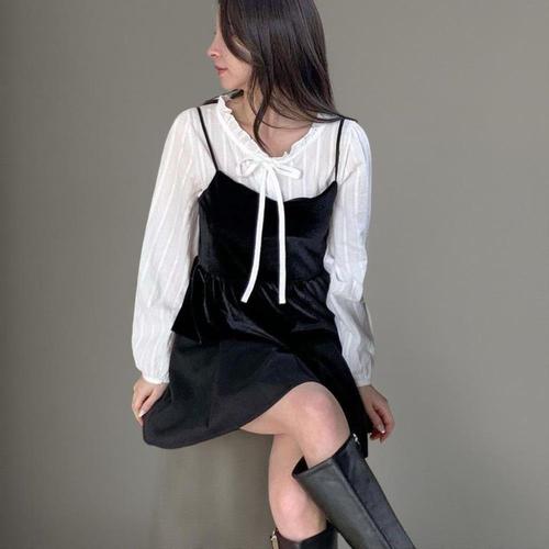 [패션시그널]반팔자켓 + 끈나시롱원피스 세트 A36B1A