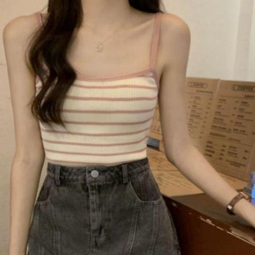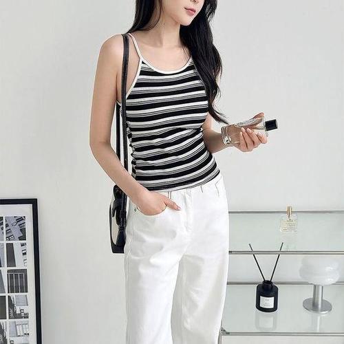 [셀러허브_여성트랜드패션]ONM 여성 2컬러 스트라이프 패드캡 끈나시티 슬리브리