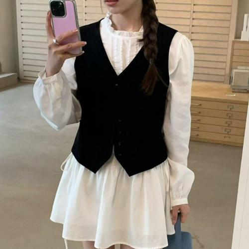 [옷자락] 여자 사계절 레이어드 끈 미니원피스