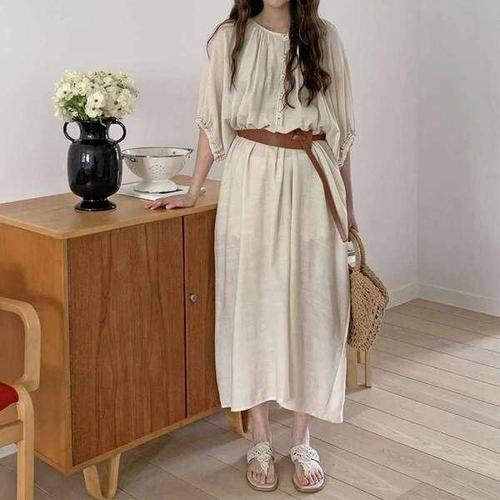 [옷자락] 여자 벨티드 레이온 롱 나그랑 원피스