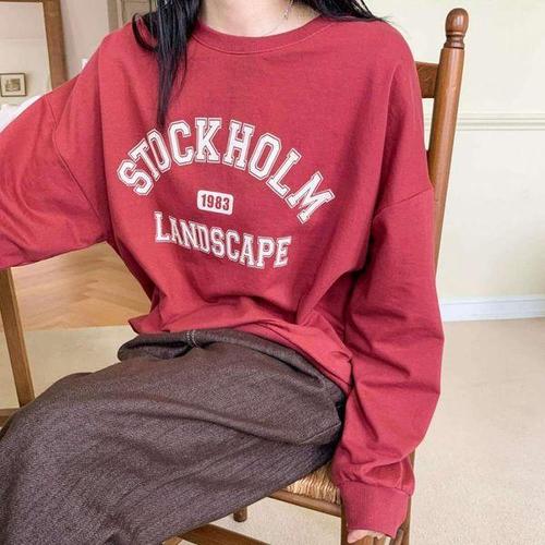 [옷자락] 여성용 캐주얼 레터링 면혼방 루즈핏 나그랑 맨투맨티