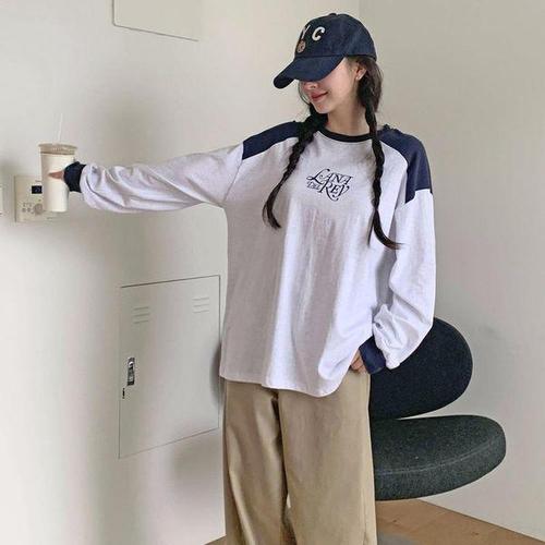 [신상오픈런]|KST8BA1|배색 라글란티셔츠 라운드 긴팔 힙합 박스 순면 롱티_20324531_597559