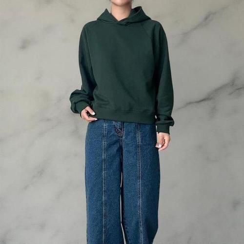 [다잇템_패션]여성 롱슬리브 민무늬 후디 코튼 라글란 티셔츠