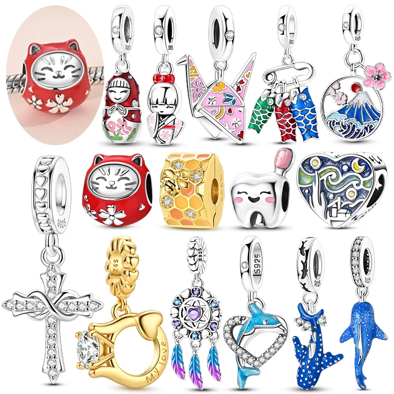 새로운 925 스털링 실버 참 비즈 야광 고래 상어 하트 돌고래 별이 빛나는 하늘 물고기 참 오리지널 팔찌에 맞는 쥬얼리 선물