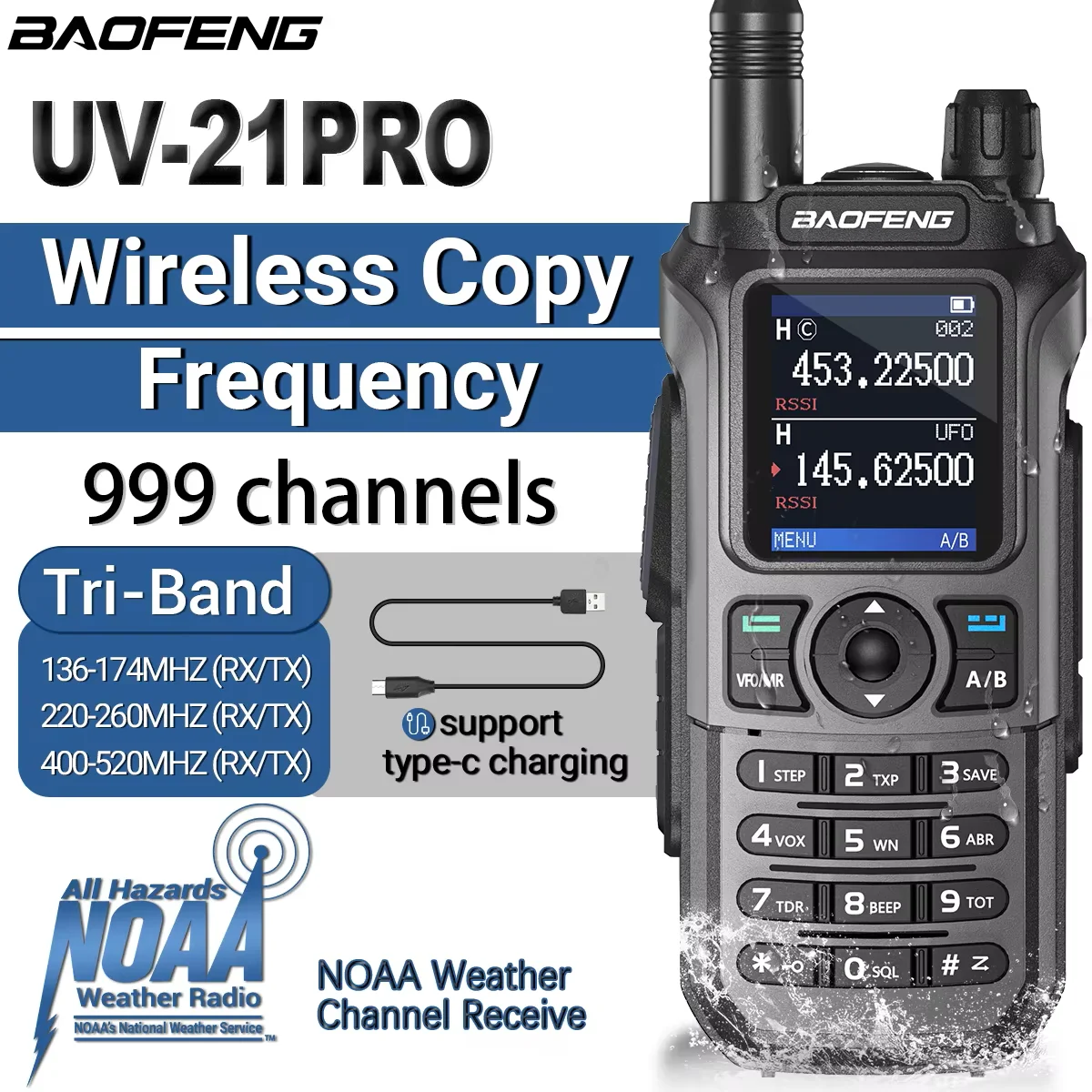 바오펑 UV-21 PRO 무전기 장거리 무선 복사 주파수 타입-C 충전기 트라이 밴드 강력 방수 V2 양방향 라디오