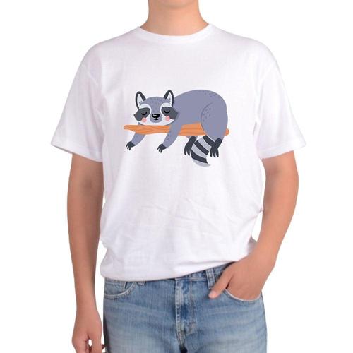 오버핏반팔 너구리 raccoon dog 동물 낮잠 나무위 WF1754F