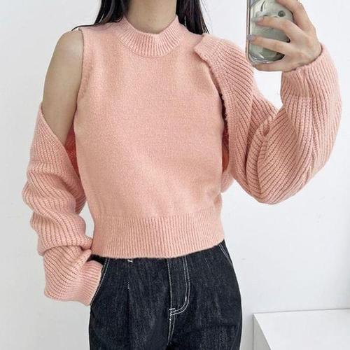 [옷자락]여자 키치무드 홀터넥 니트 나시 볼레로 가디건 세트