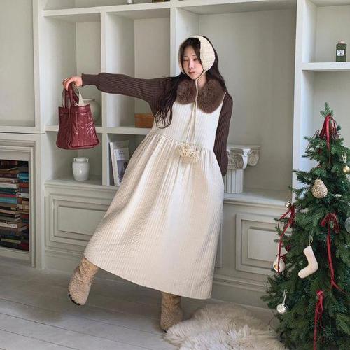 [다잇템]여자 면혼방 슬리브리스 퀼팅 핀턱 롱 원피스