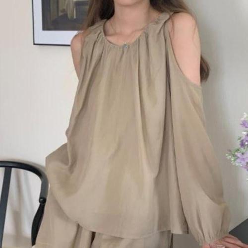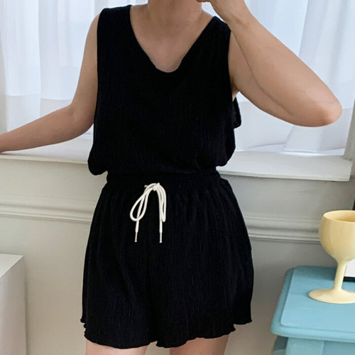 [옷자락]여성 셔링 어깨트임 나시 블라우스와 반바지 세트